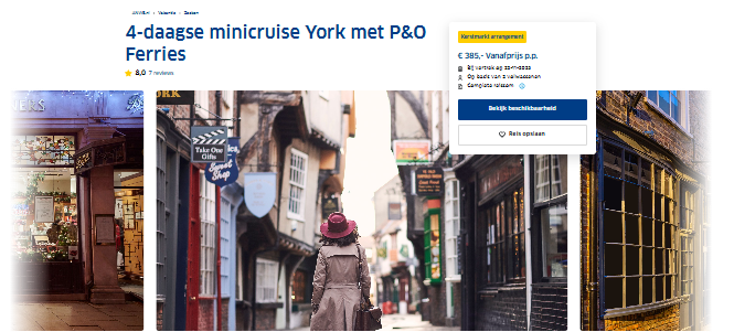 De minicruise naar York is een geliefde korte reis die een nachtelijke ferryovertocht combineert met een dag vol historie en cultuur in Noord-Engeland. De reis begint in Rotterdam Europoort en biedt een ontspannen manier om Engeland te ontdekken.